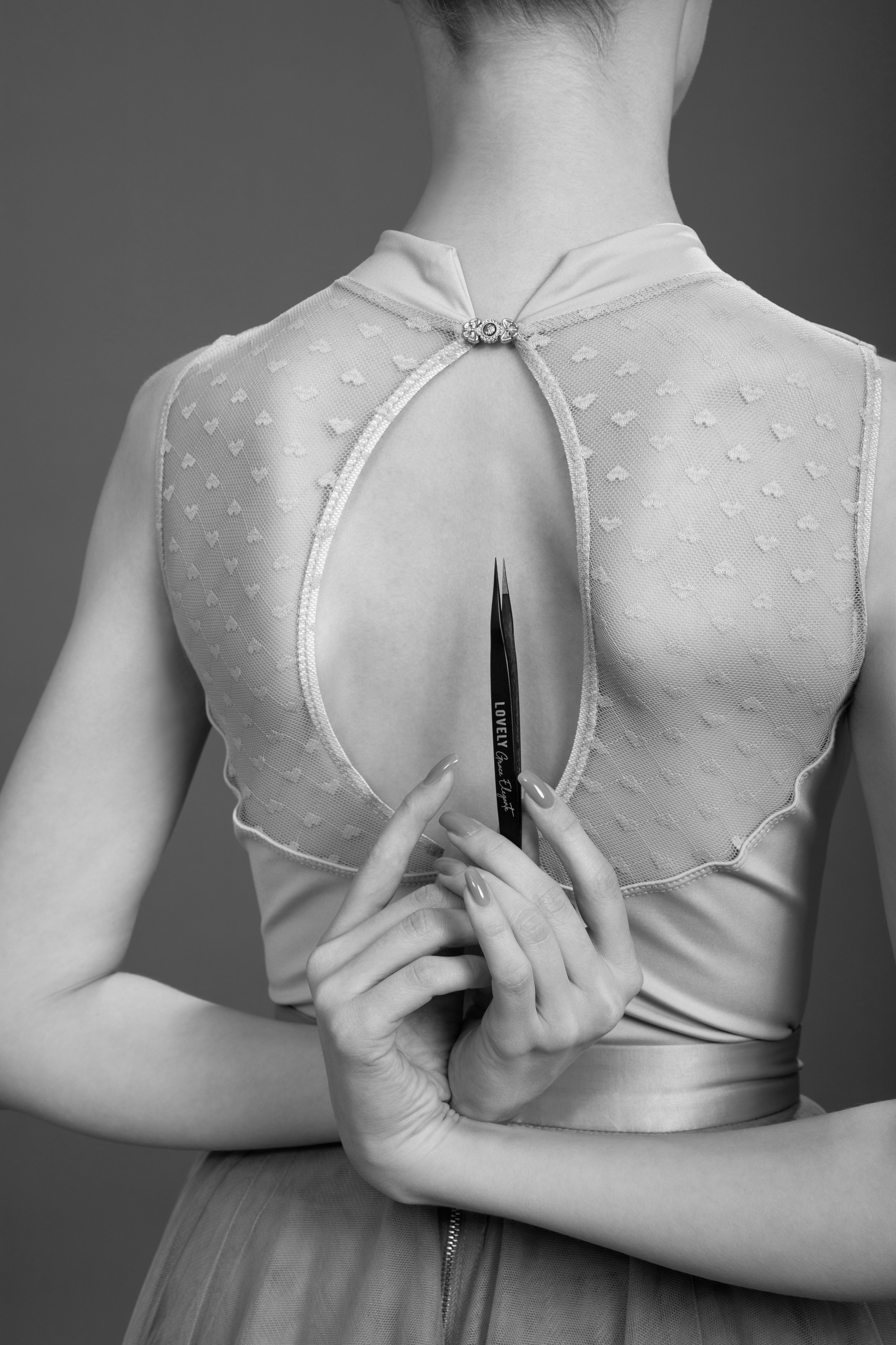 Pinzetta per Extension Ciglia Lovely "Elegant Grace" – Serie NanoFiber Black, Mini Stivaletto