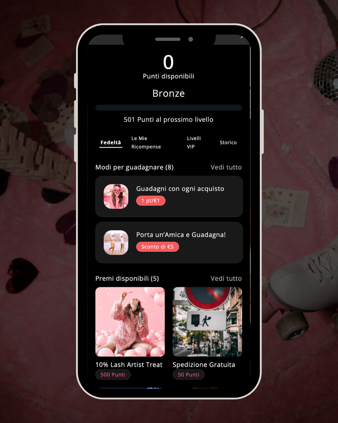 Ogni acquisto ti avvicina a vantaggi esclusivi: sconti, spedizione gratuita, regali e tanto altro. Più punti accumuli, più premi sblocchi!